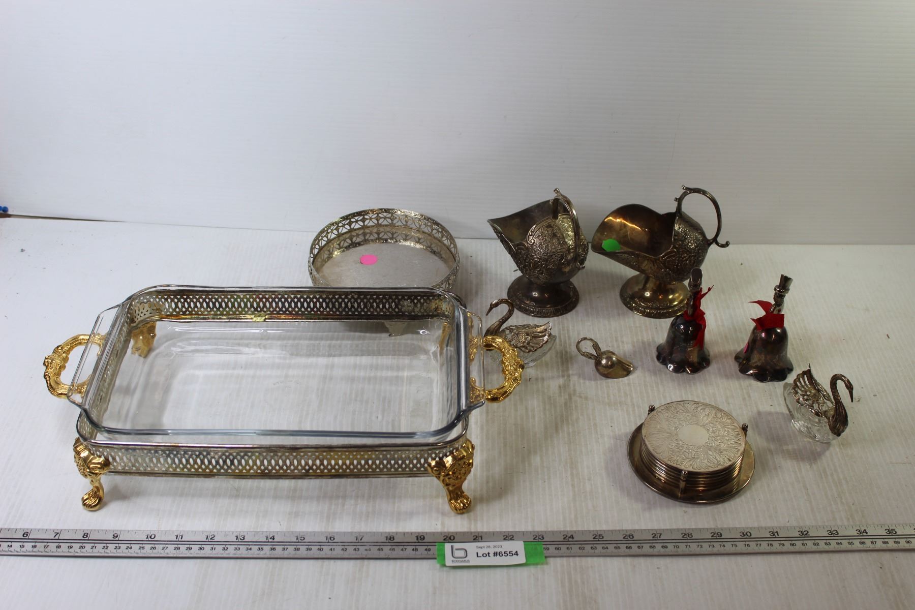 Coasters + Casserole Dish + (2) Bells + Silverware Misc.