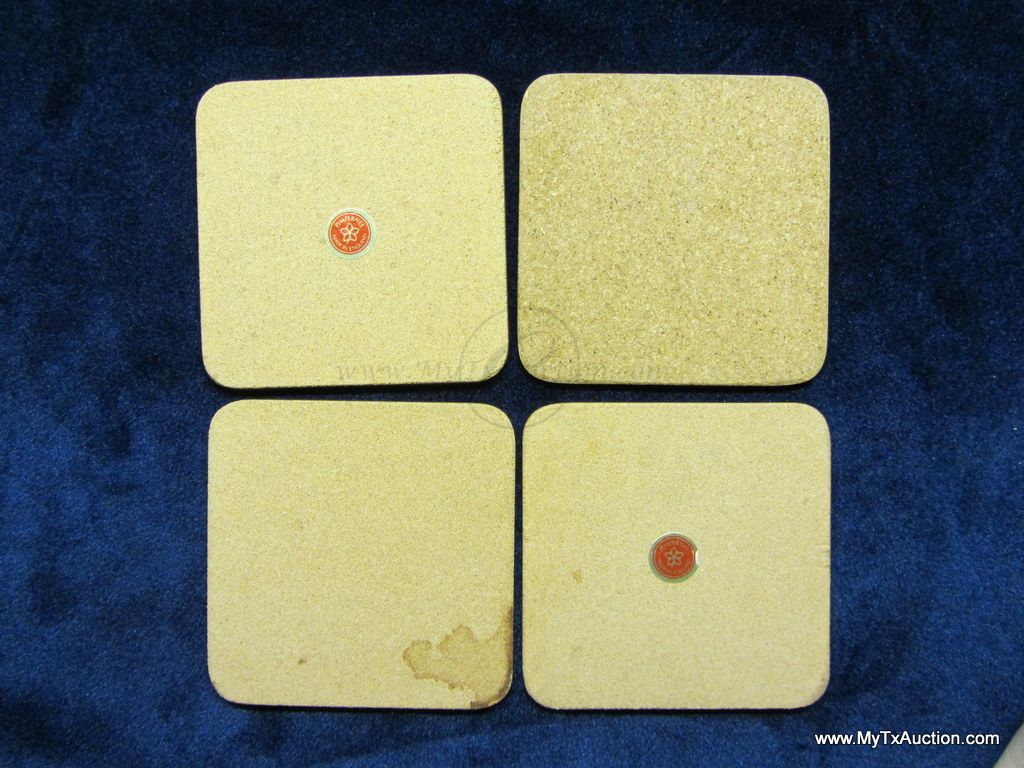 Hardboard Coasters they measure 4" x 4". These coasters were show room display