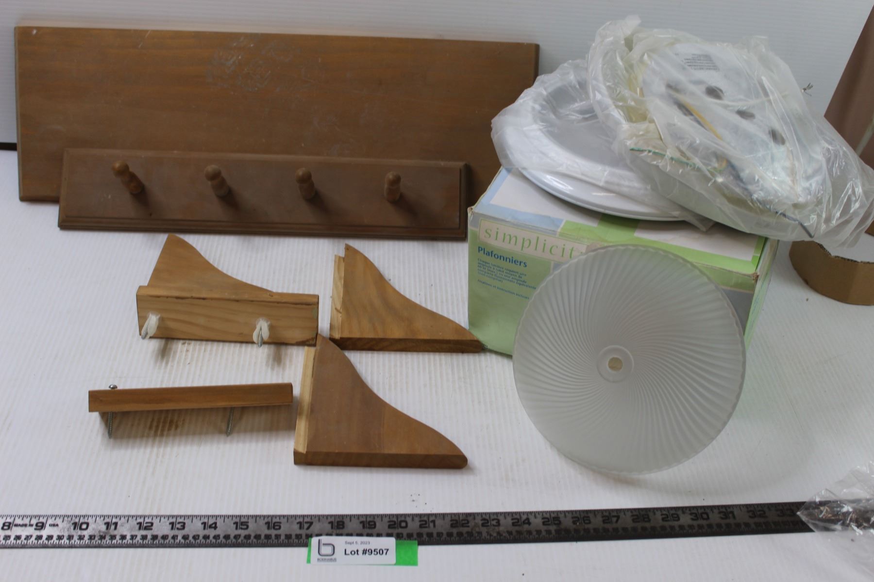 *Coat Hanger, Ceiling Light Fixture, and Other Wooden Shelving