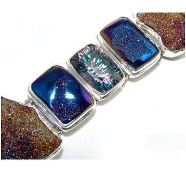 Silver & Coated & Agate Drusy & Mystic Topaz Bracelet