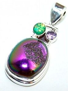 Silver and Coated Drusy, Opal & Amethyst Pendant. Allow 6 to 8 weeks for delivery.