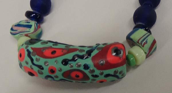 Cobalt Blue Beaded Necklace by Kills Thunder. Measures 12'' end to end. SHI $15.