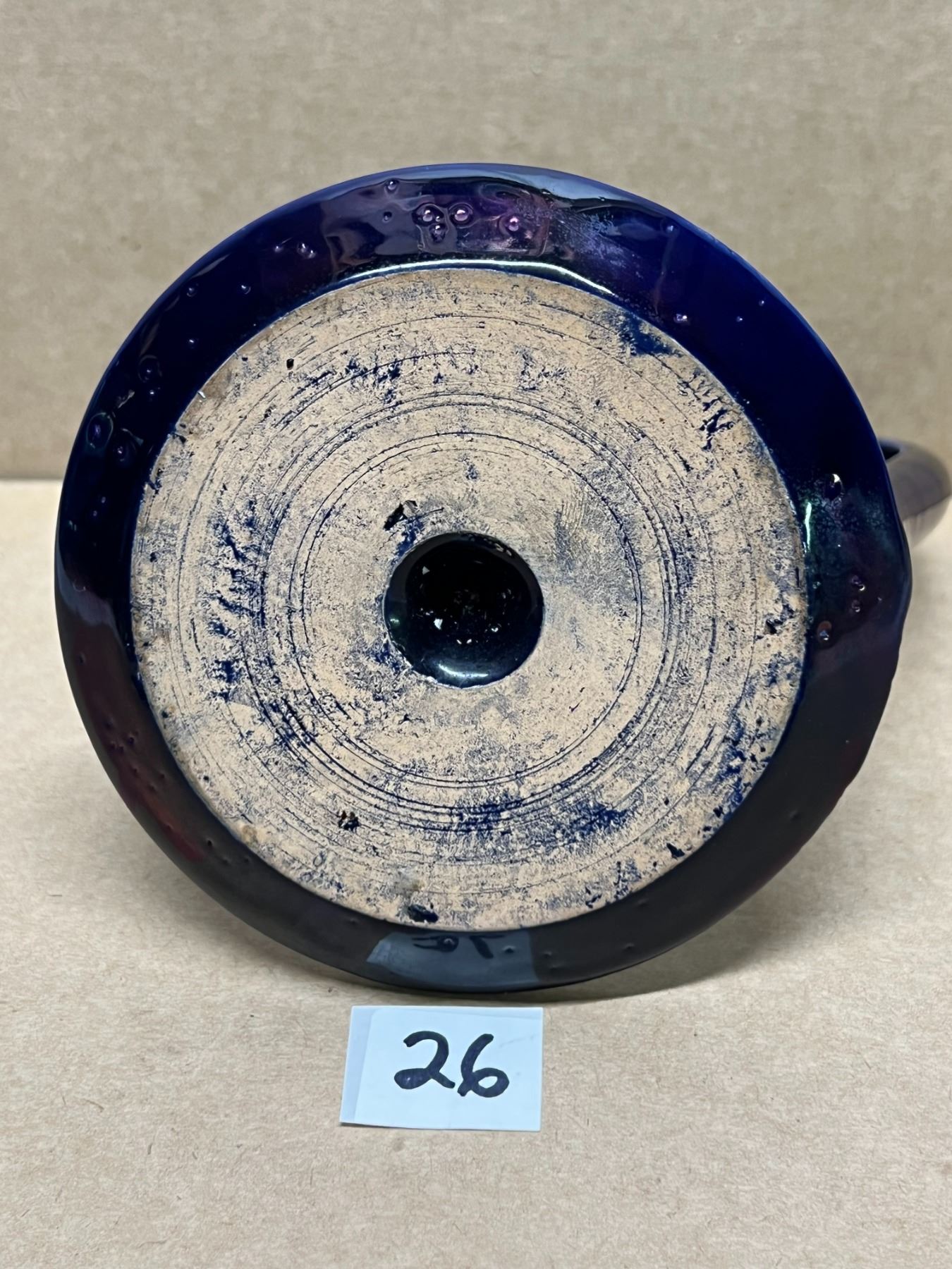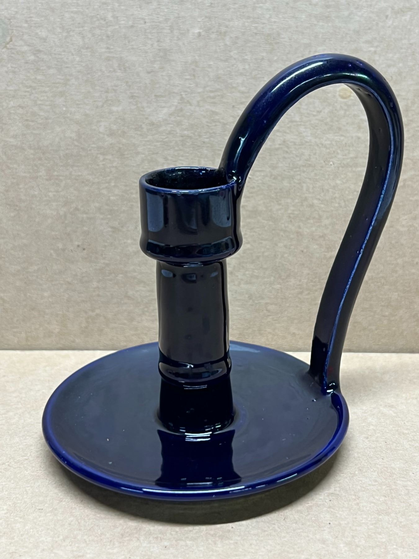 Cobalt Blue Ceramic Candle Stick Holder w/handle Approx: 4.75"T 4.75"W