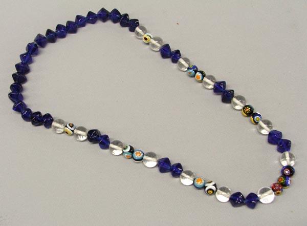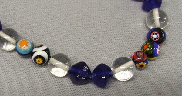 Cobalt Blue Crystal and Millefiori Bead Necklace, measures approx. 24''. SHI $15.