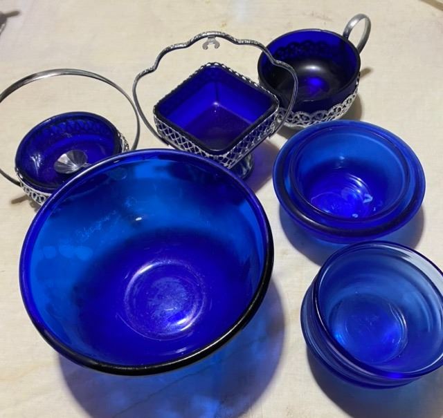 Cobalt Blue Glassware - bowls, cream, sugar - 8 pieces