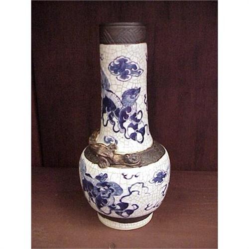 Cobalt Blue Crackleware Glazed Vase with Dragon. c.1668-1908