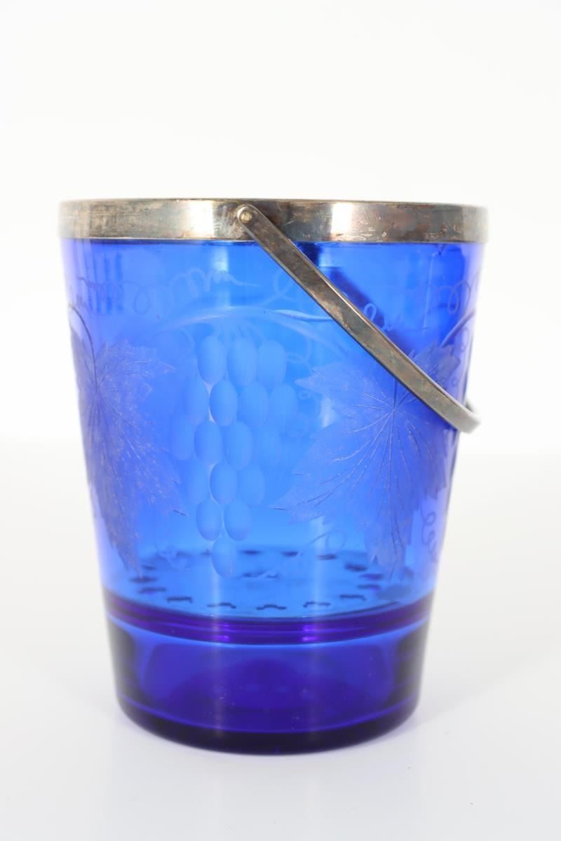 Cobalt Blue & Silver Plate Ice Bucket, etched grapevine design.
