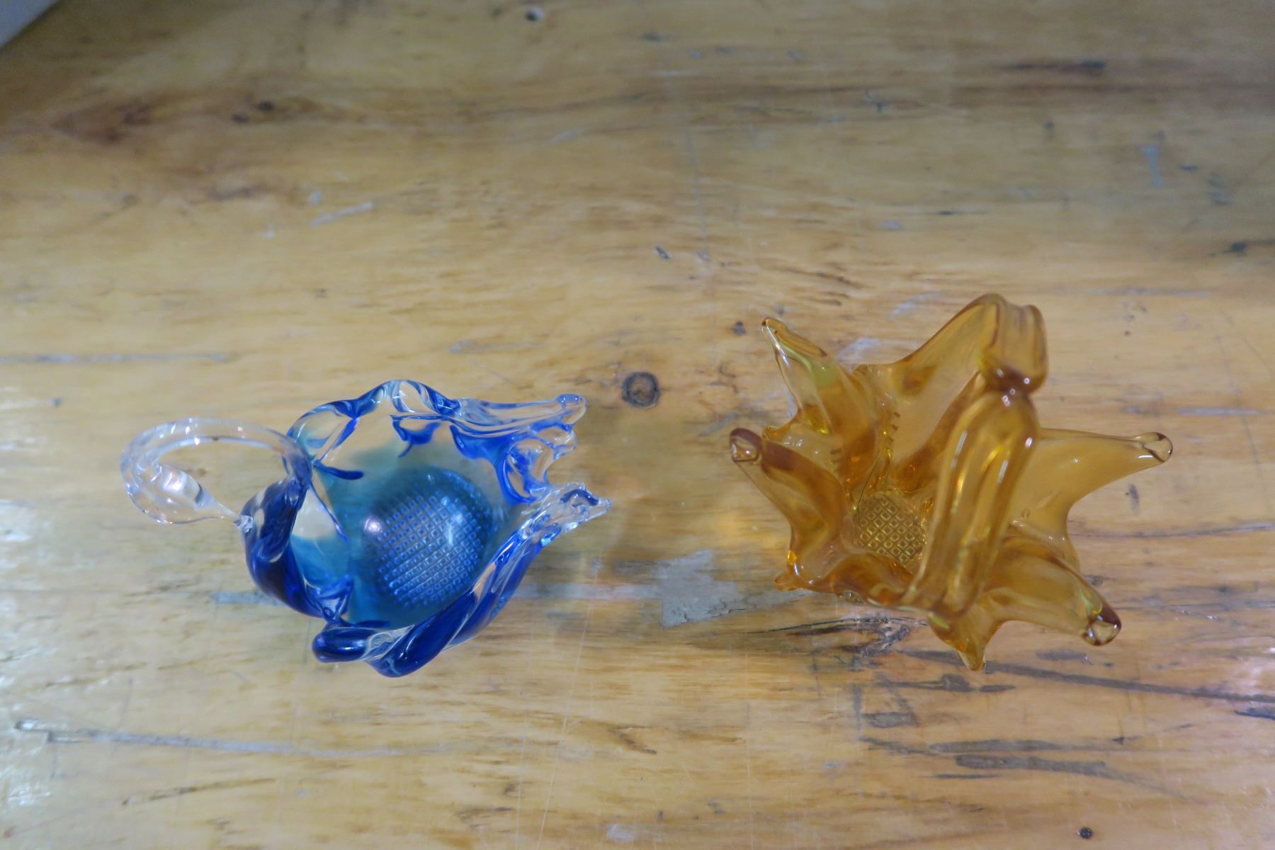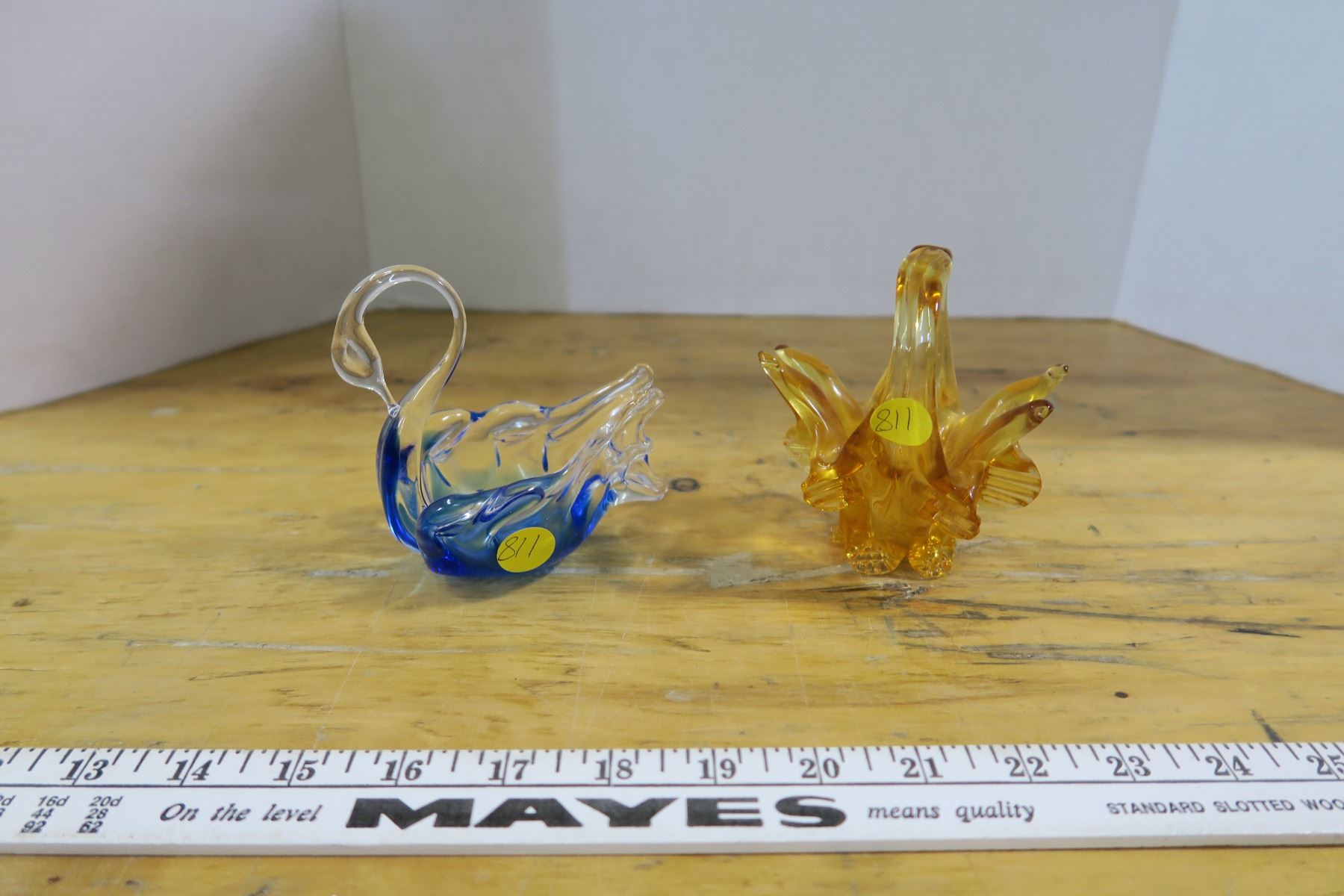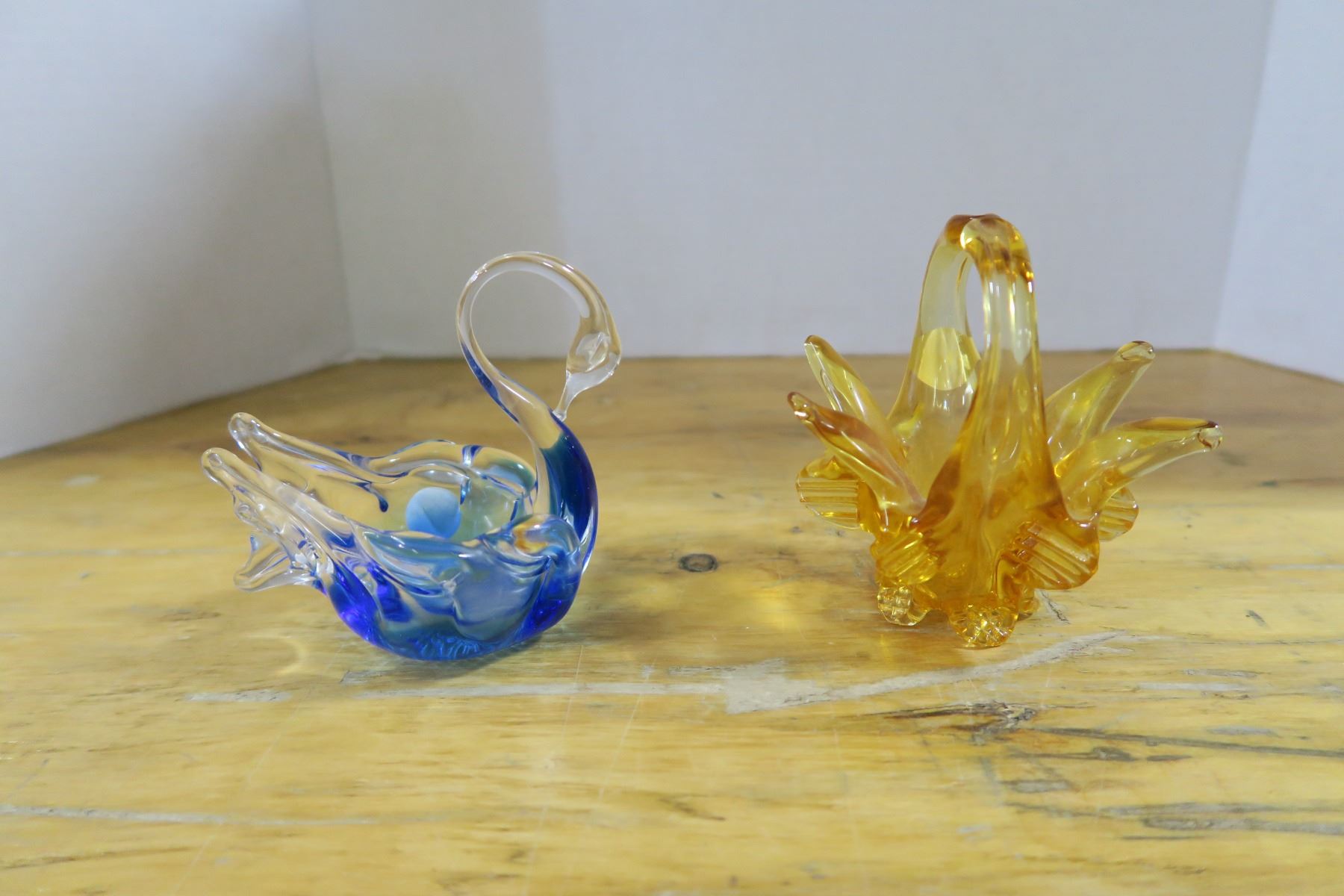 Cobalt Blue Swan & Amber Blown Glass Basket