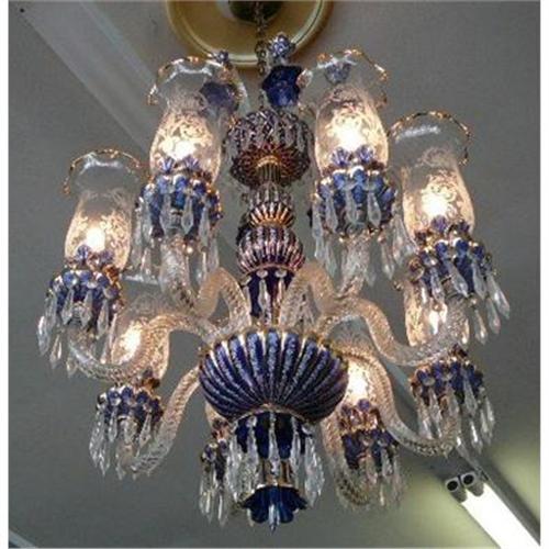 <tr><td>Title:Cobalt Blue and Clear Crystal Chandelier</td></tr>