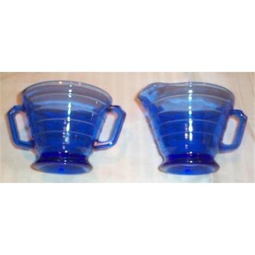 We are offering you both the Cobalt Moderntone Creamer and Sugar all for one money. Both the cream and sugar are in SUPERIOR condition with no chips, cracks, or dings. Moderntone was manufactured by Hazel Atlas Glass Company.
