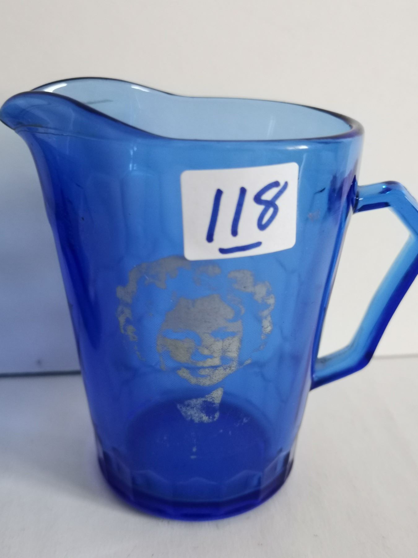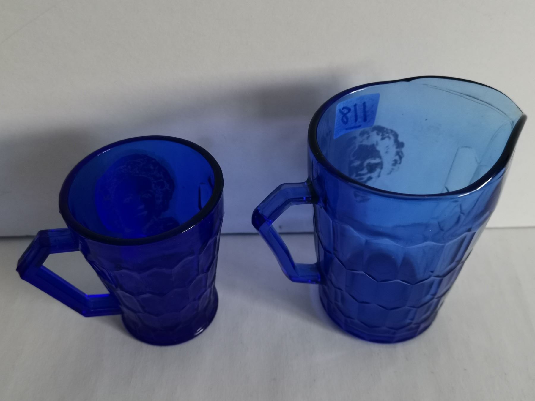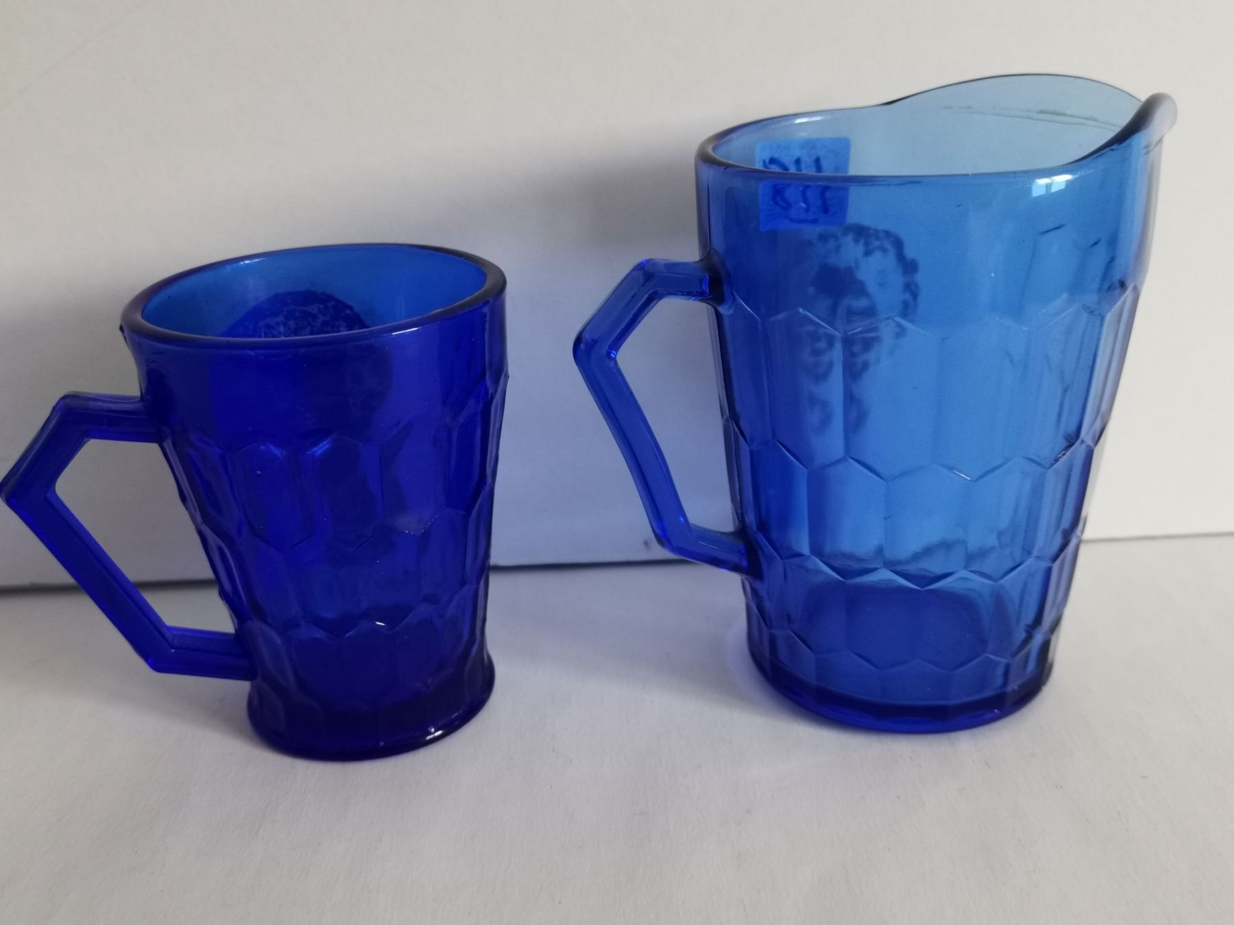 Cobalt blue, Shirley Temple pitcher - 4.5" and cup 3.5"