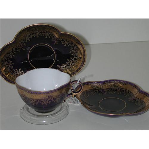 Cobalt blue with lovely gilt trim cup and saucer with an extra saucer.