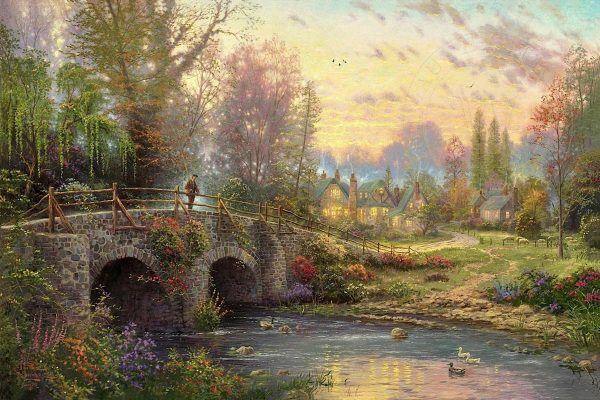 Cobblestone Evening by Thomas Kinkade. Unframed and stretched on Limited Edition enhanced canvas. Comes with certificate of Authenticity! Dimension (inches): 18x27