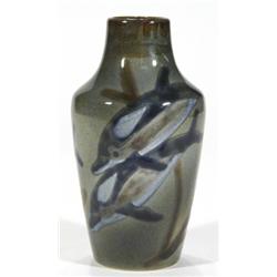 Cobridge stoneware vase, hand painted with 'Ocean Traveller' pattern, impressed marks and initialled 'RW98' to base, 17cm high