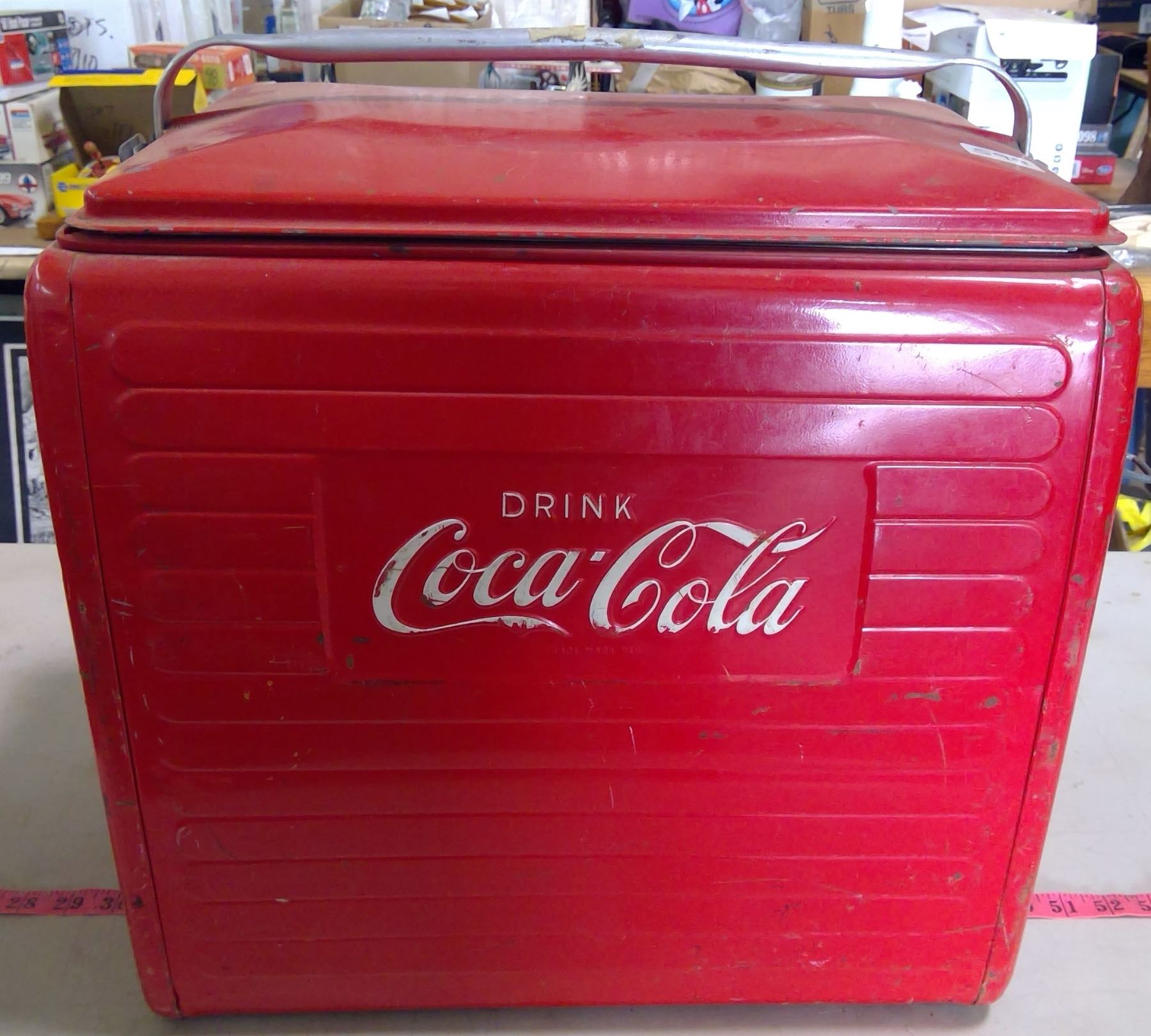 Coca Cola 1950's Antique Red Metal Cooler with Tray