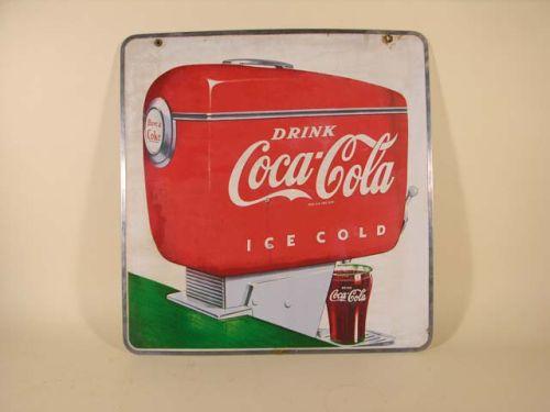 Coca-Cola 2-sided porcelain sign/fountain dispenser, 28" sq., Ex. cond.