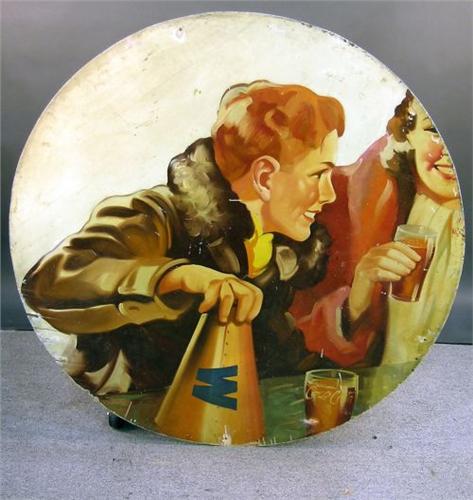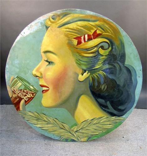 Coca-Cola 2 sided Round Hand Painted Advertising Sign 48" diam 1940's