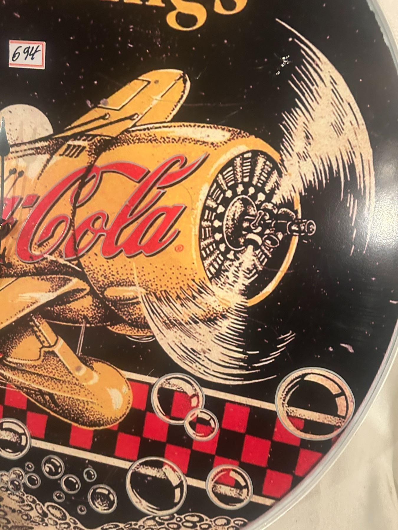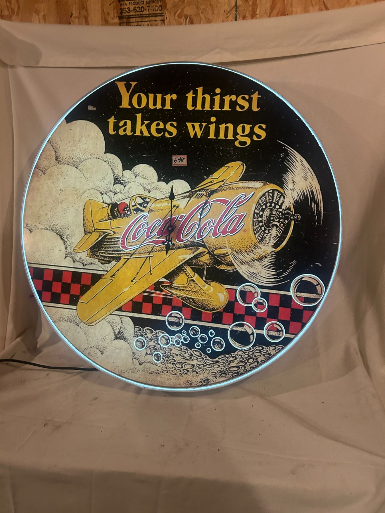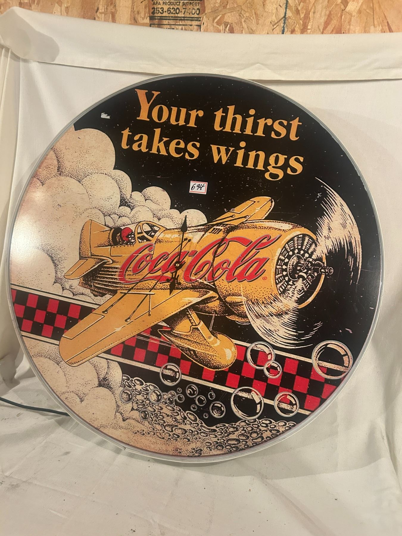 Coca-Cola 32" round light-up sign - fantasy item, has clock, good decorator piece