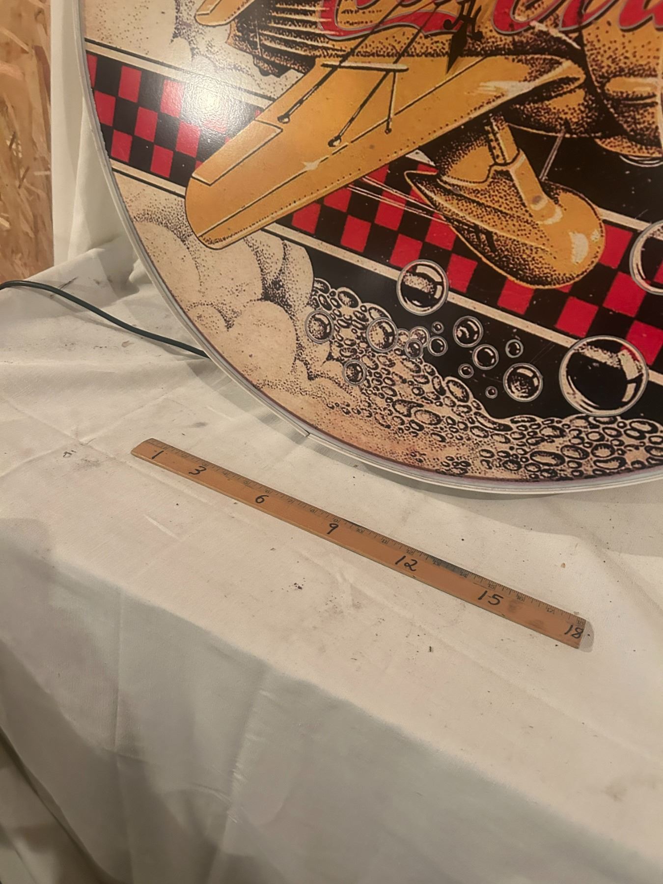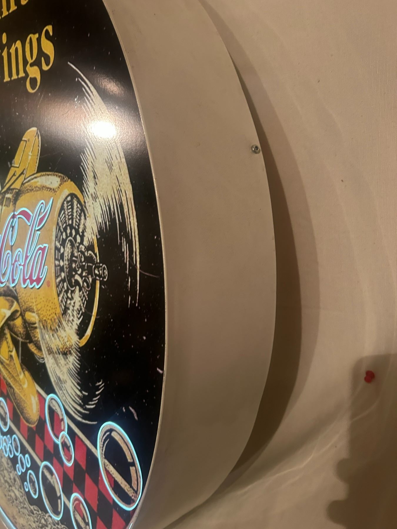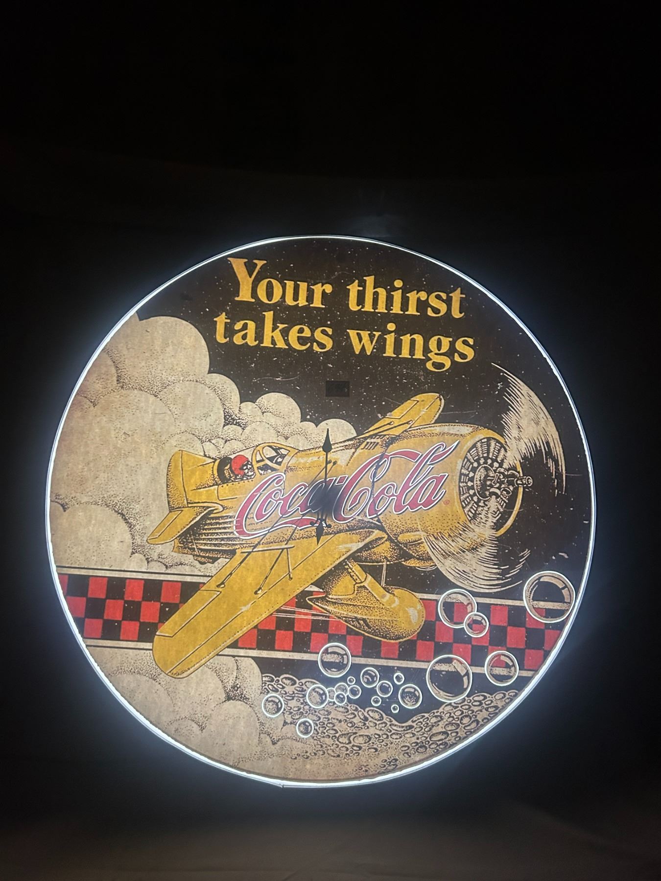 Coca-Cola 32" round light-up sign - fantasy item, has clock, good decorator piece