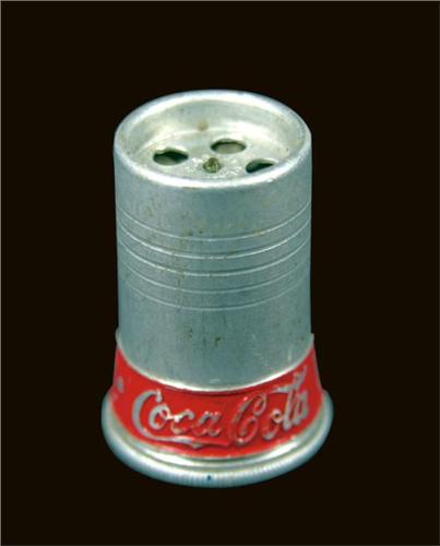 Coca Cola Aluminum Whistle, shaped like a thimble. Excellent condition. 1 inch tall.