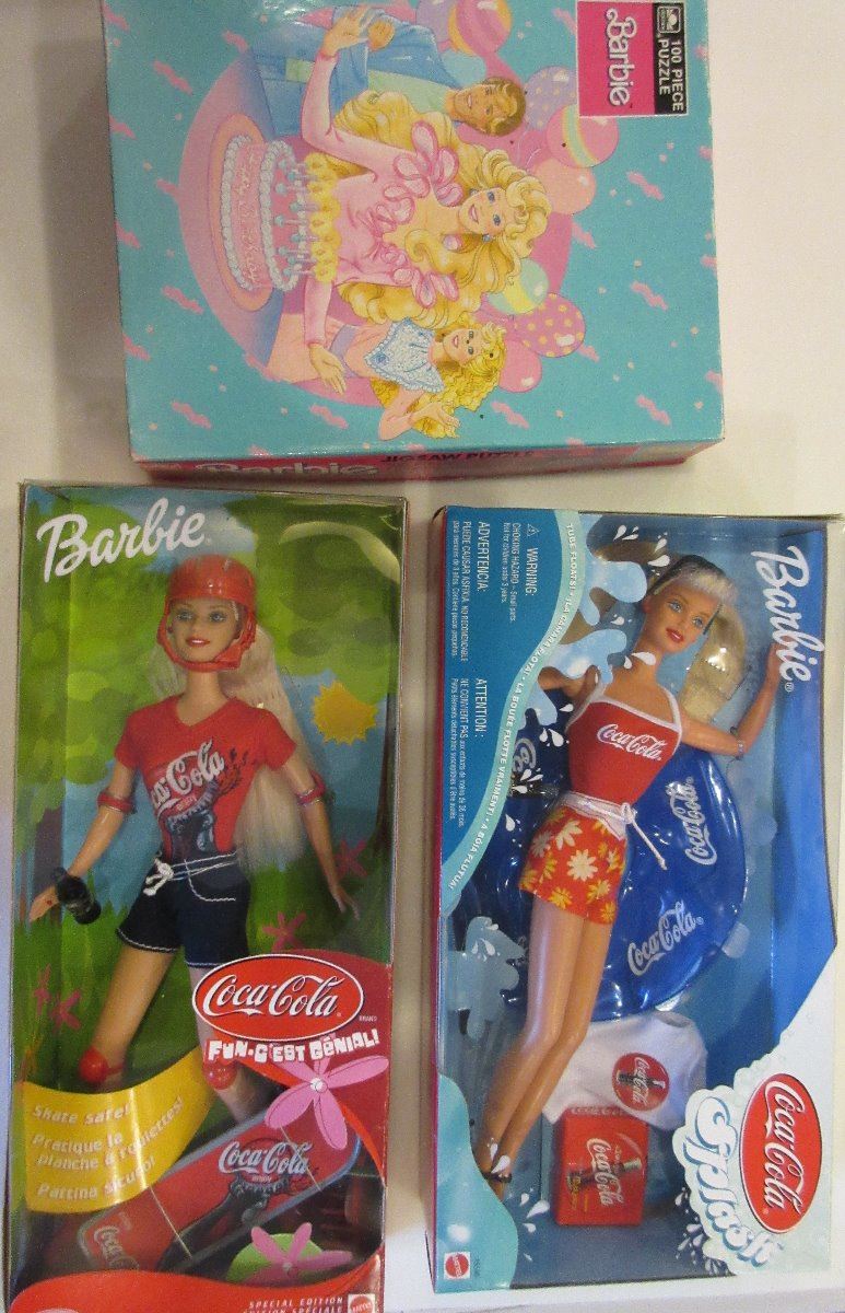 Barbie 100 Piece Jig Saw Puzzle , Coca Cola Skateboard Barbie 2001 Mattel Inc., Coca Cola Splash Barbie 1999 Mattel Inc.