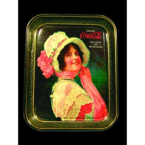 Coca Cola Betty Tin Serving Tray, some typical crazing and small dent at 10:00 otherwise very good condition, 10 1/2 x 13 1/4 inches.