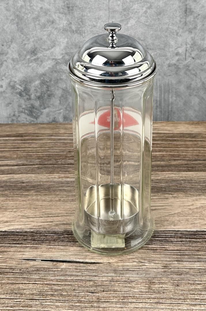 Measures 11" tall by 4 1/4" in diameter.