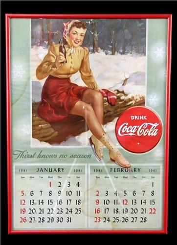 Coca-Cola calendar framed Jan-Feb 1941 20"x15"