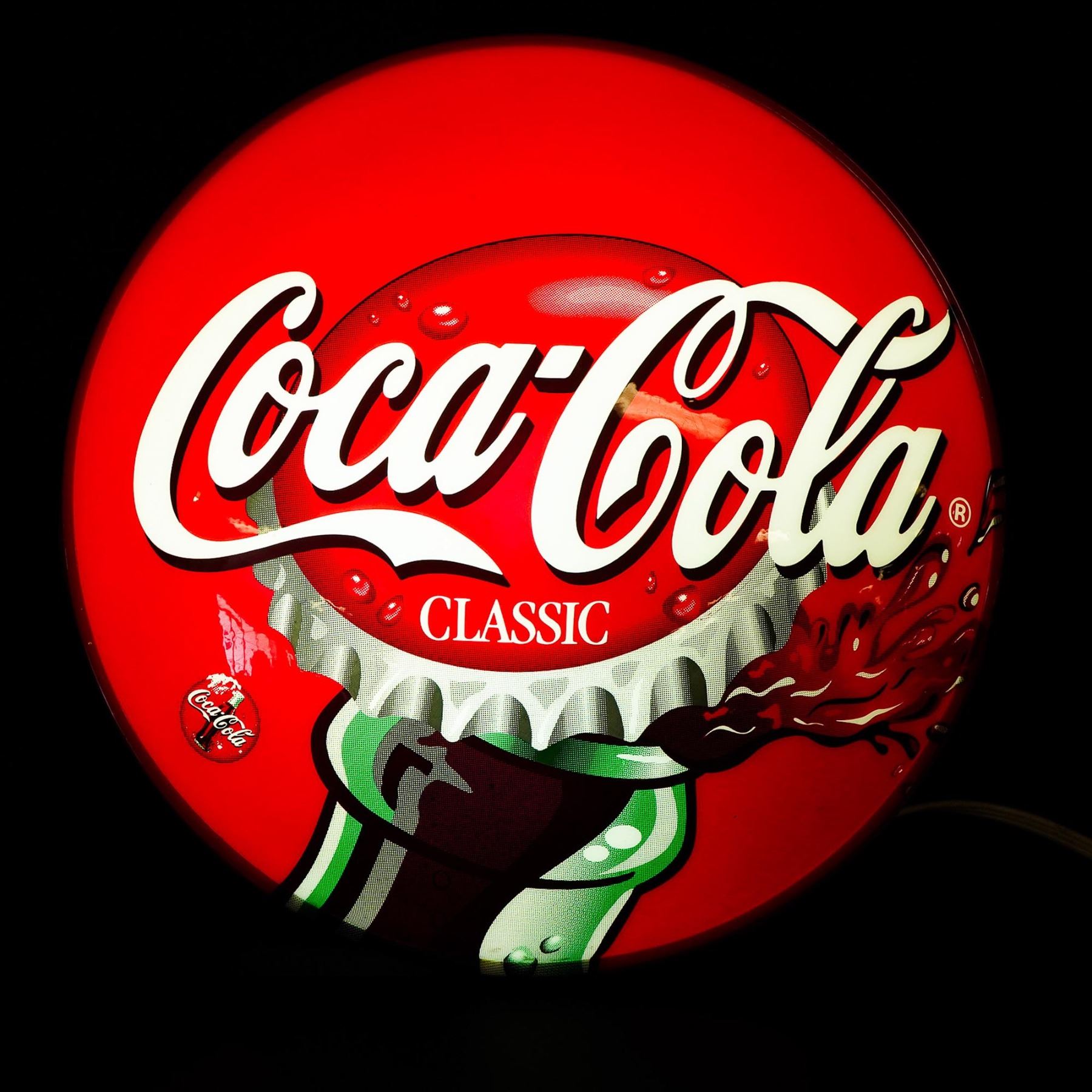 Wall advertisement sign designed in Coca-Cola's Classic red and white with logo prominently displayed. This great collectible is ready to hang and display.