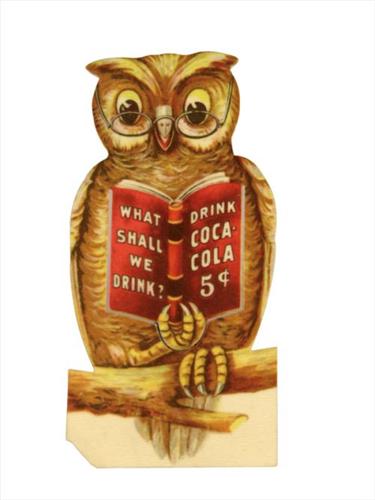 Coca Cola Celluloid Owl Bookmark, 1906. Mint condition. 1 1/2 X 3 1/8 inches.