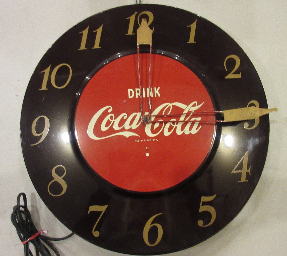 Original 1951 17 1/2 inch Maroon Round Coca Cola Clock (Reg. U.S. Pat. Off.)