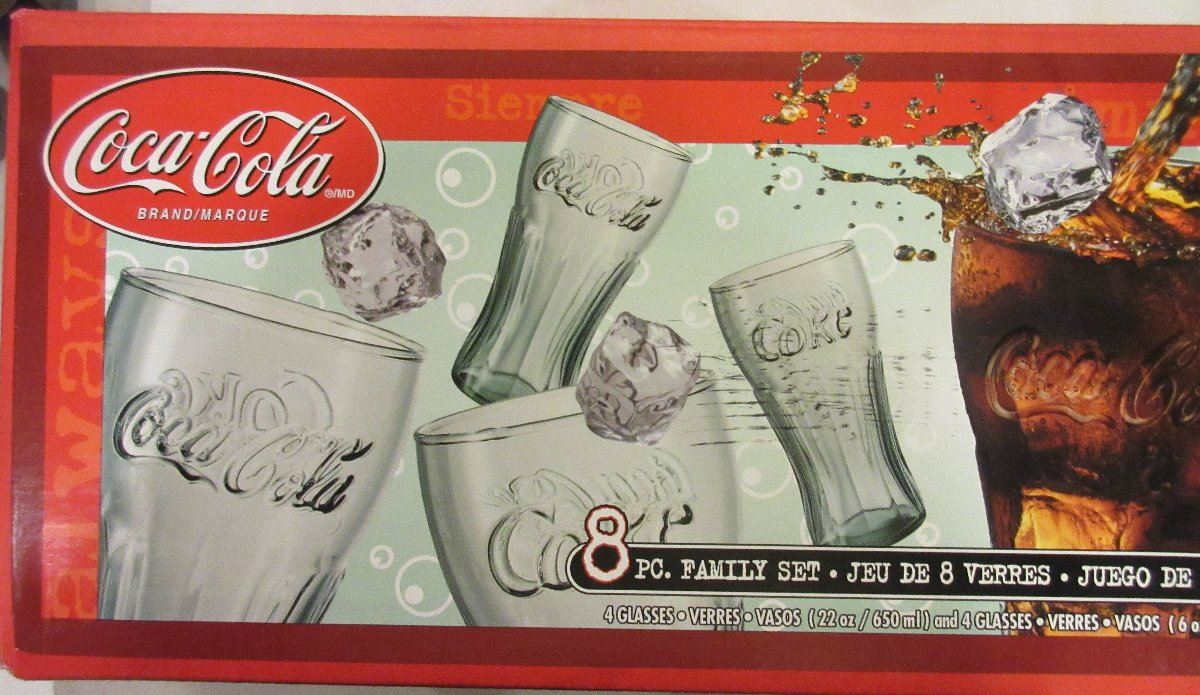 New In Box 8 piece family Glass Set, Coca Cola Mug in Box, McDonalds Coca Cola Beverage cups with lids, 1992 Barcelona Olympic Games Glasses and other unique Coca Cola Glasses