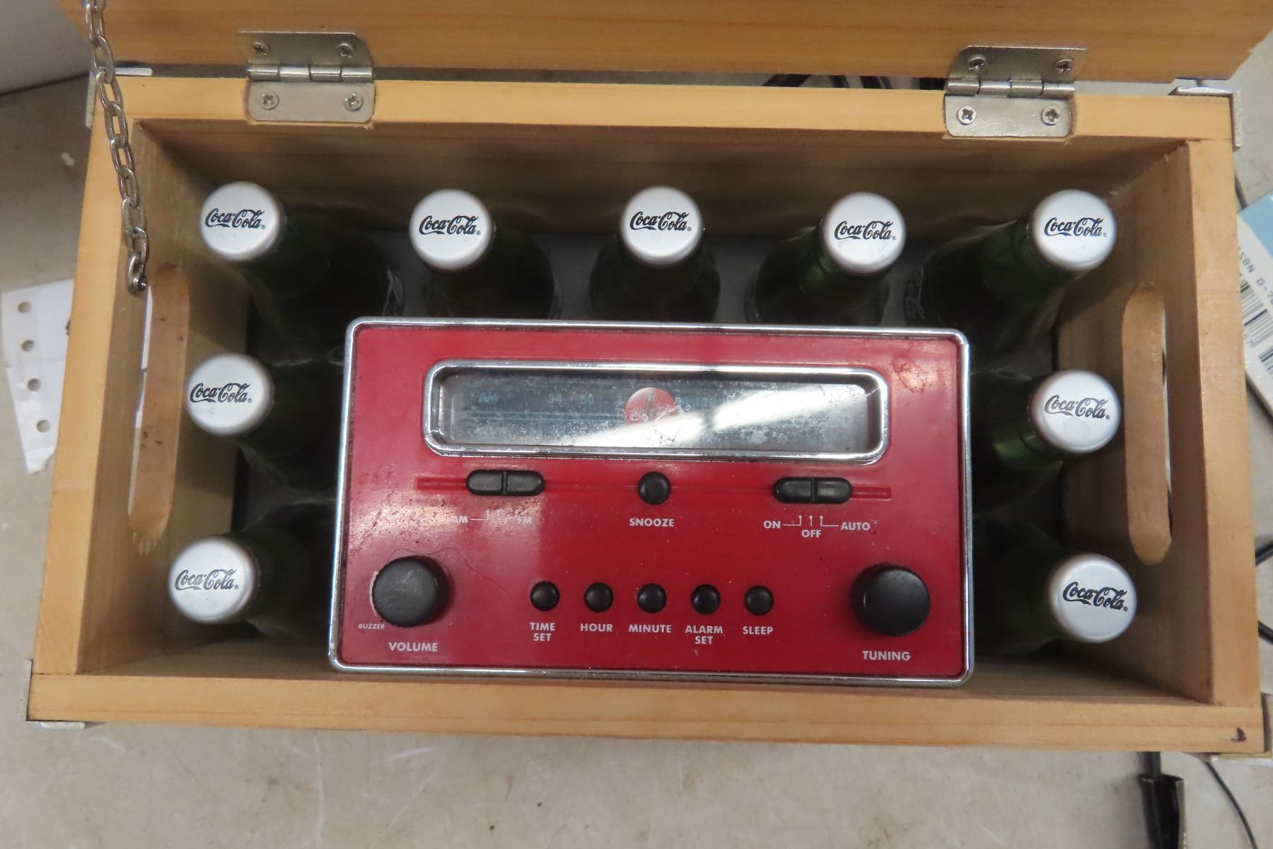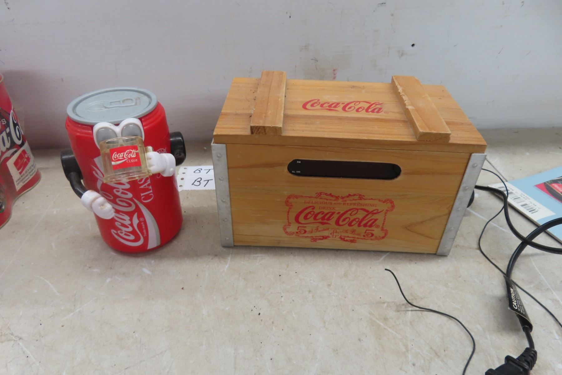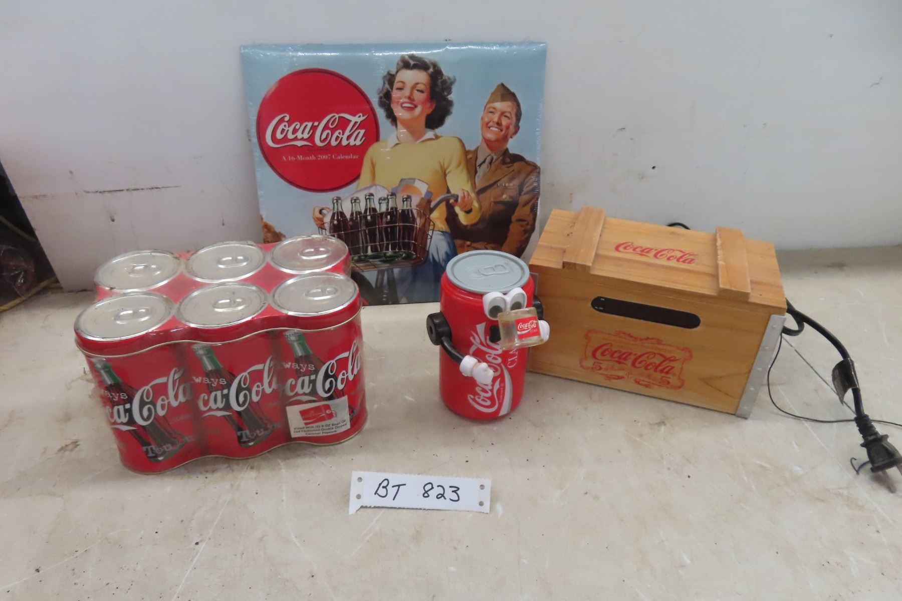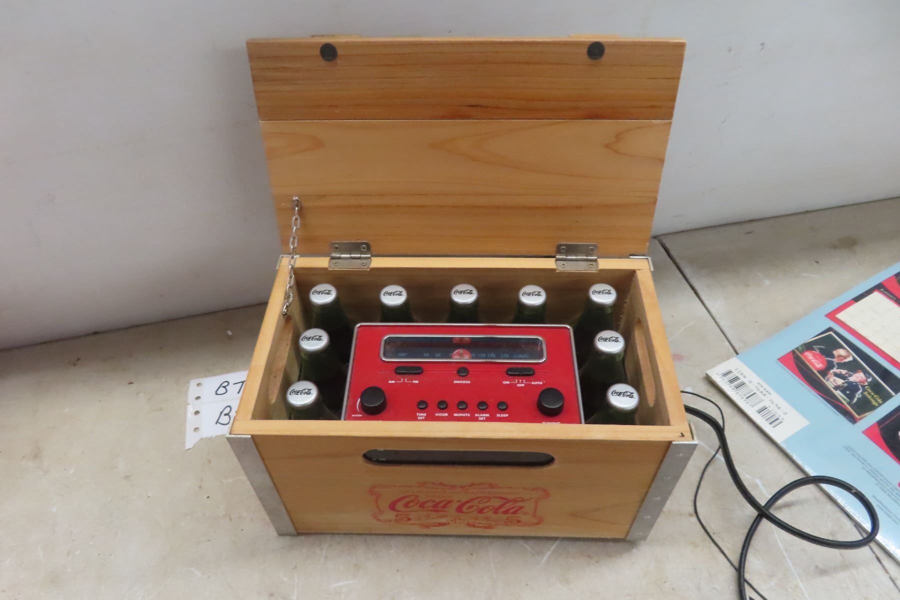 Coca Cola Collectables Factory Wrapped 2007 Calander and 6Pack Tin of Popcorn Coca Cola Crate Clock Radio
