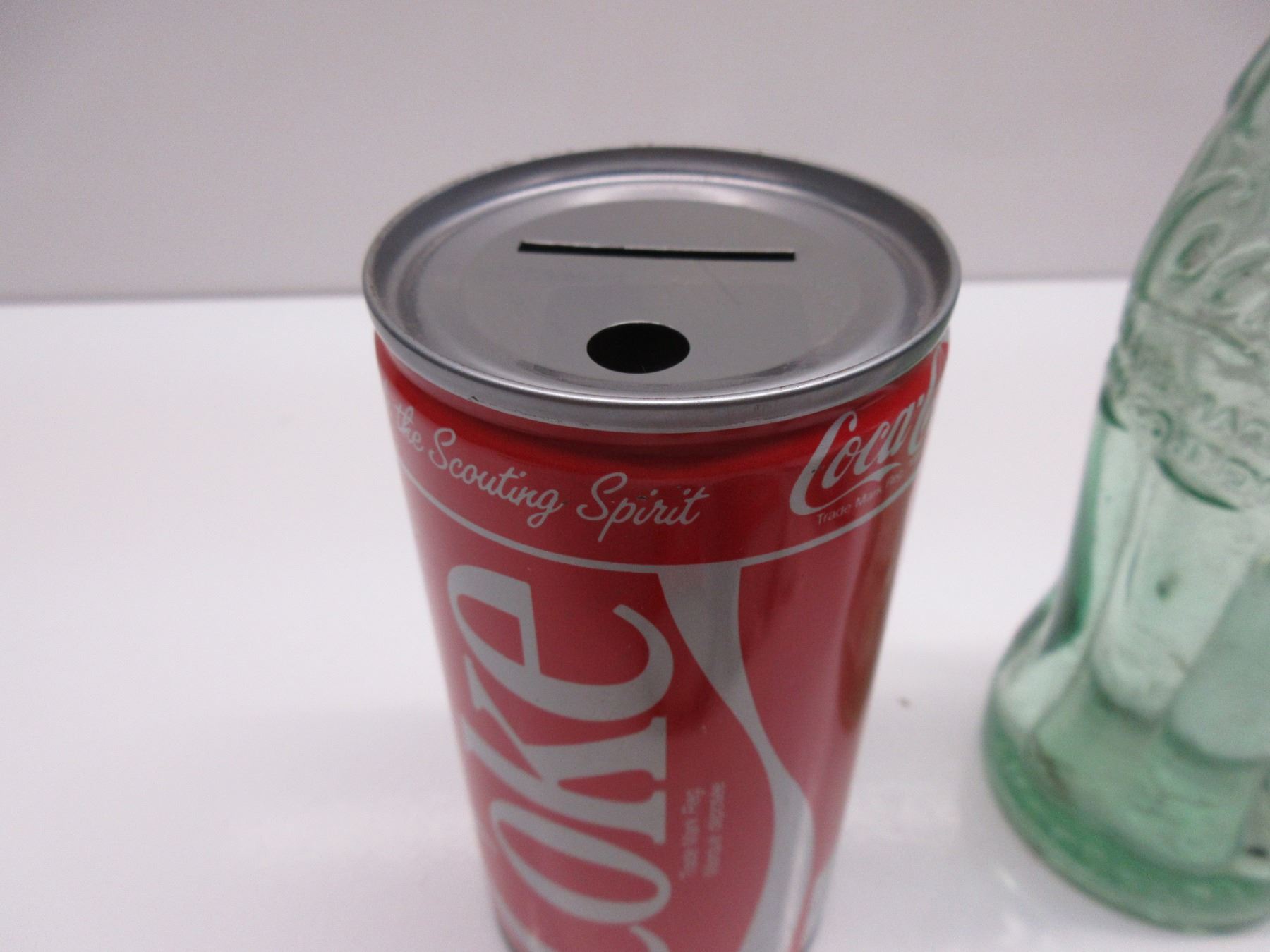 Coca-Cola Collectibles - transister radio, tin piggy bank, tin salt & pepper (pepper rusty), 2 miniture bottles, key ring, 2 small green bottles, salt & pepper delivery guy and cart