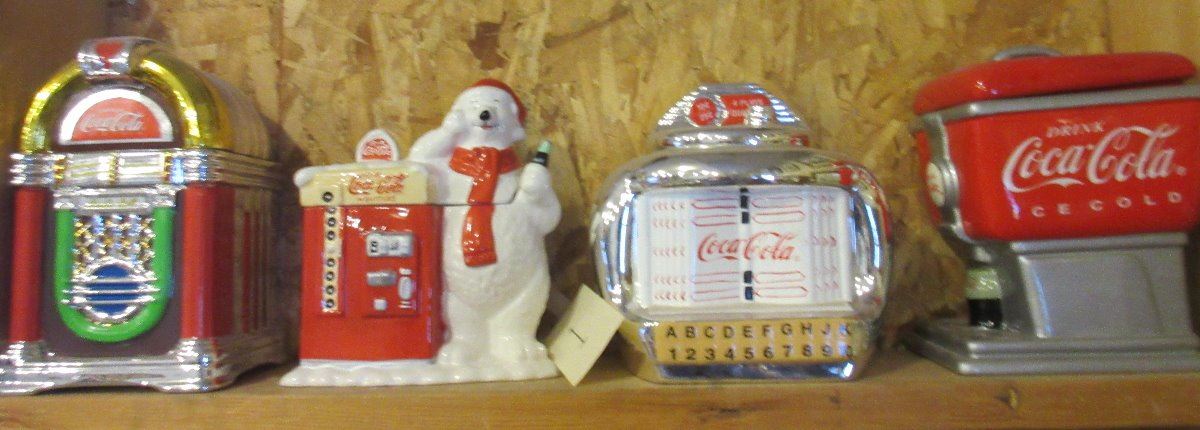 4 Coca Cola - Coke Bear with Pop Machine, Soda Fountain, table jute box, Jute box