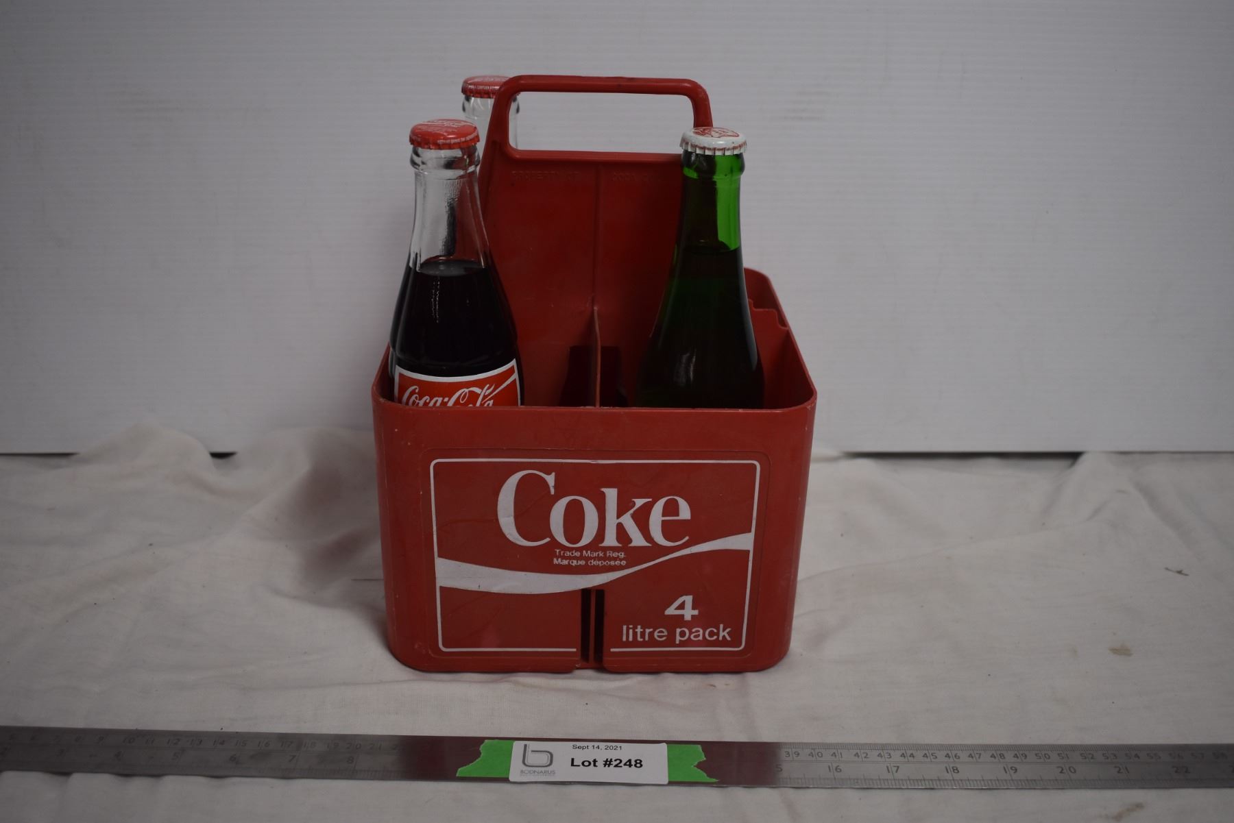 Coca Cola Crate with 4 full bottles - one grand canyon coke bottle