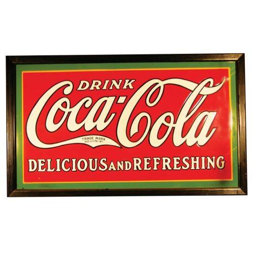 Coca Cola Embossed Porcelain Sign. Near mint condition. Approx. 5 ft. X 3 Ft.