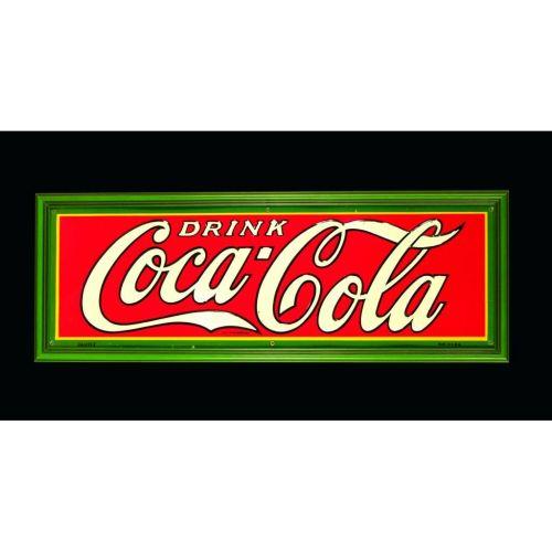 Coca Cola Embossed Tin Sign, five color by Dasco. Minor discoloration across tail otherwise excellent condition. 18 X 6 inches.