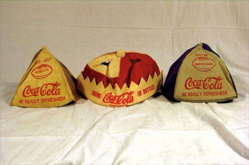 Coca Cola Felt Beanie Caps, including Bob Cats, Greyhounds and Drink Coca Cola. Excellent condition..