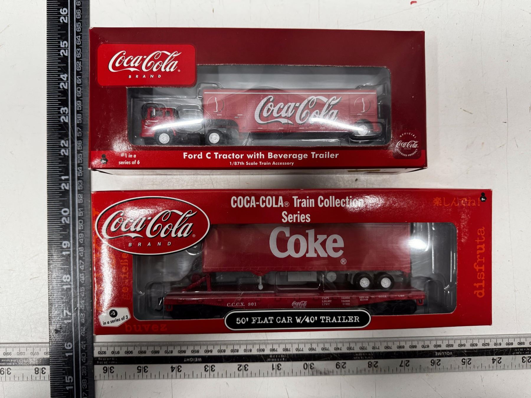 Coca Cola Ford C Tractor with Beverage Trailer and Train Collection Series Flat Car.