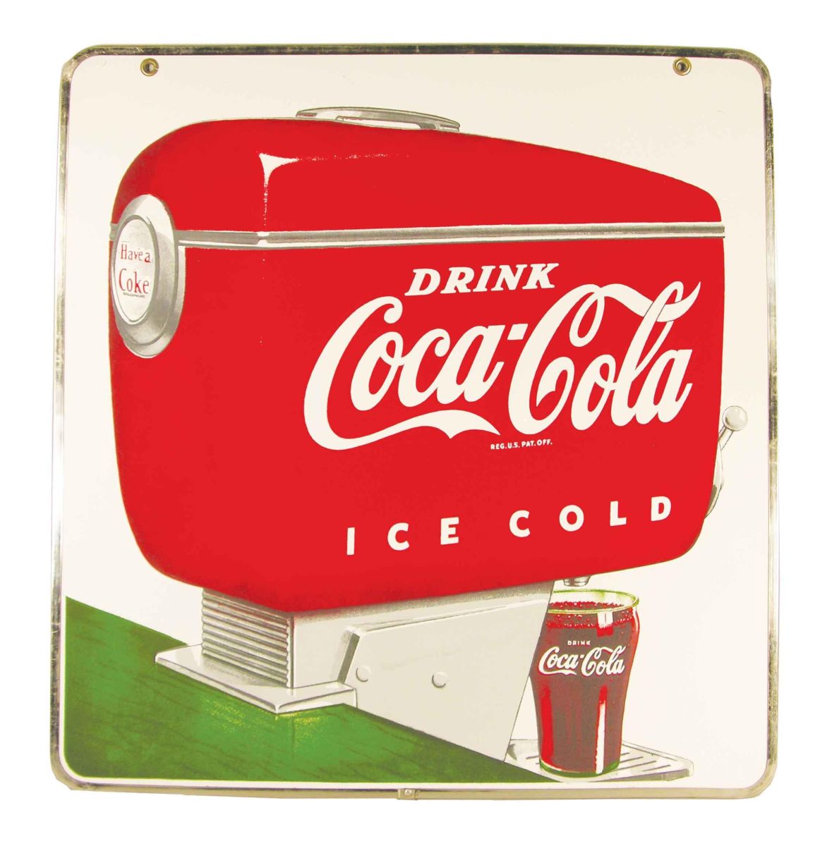 Coca Cola Fountain Dispenser, two sided porcelain sign. Near mint condition, no bracket. 27 X 28 inches.