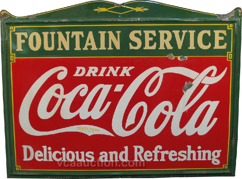 Coca Cola Fountain Service Die-Cut Embossed Porcelain Sign - 60" x 48"