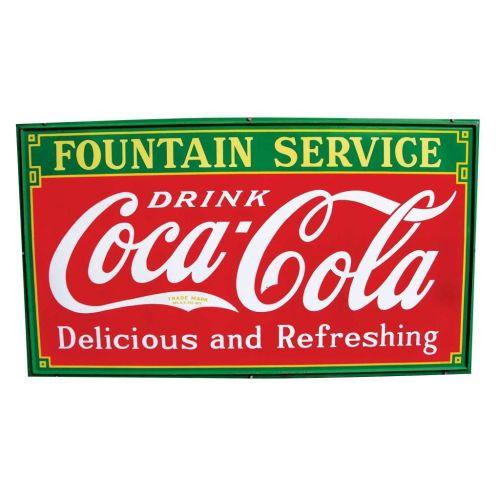 Coca Cola Fountain Service Porcelain Sign. Strong colors, some scratches and a few chips otherwise very good condition. 1933. 96 X 55 inches.