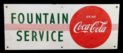 Coca-Cola fountain service 1- sided porcelain sign w/picture of round button 12"x 30 "