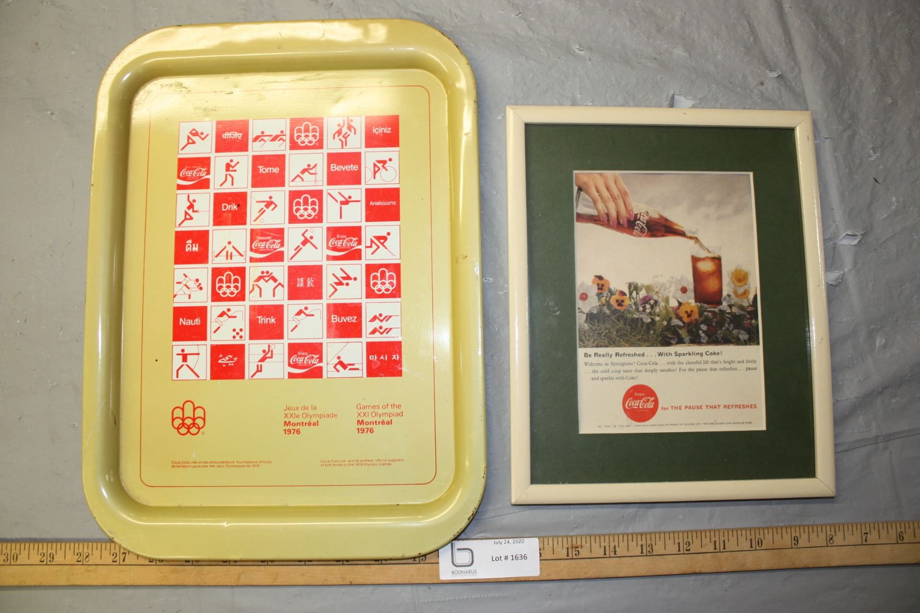 Coca-Cola Framed Advertisement and 1976 Olympics Tray
