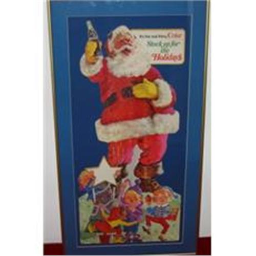 <tr><td>Title:Coca Cola Framed Cardboard Santa Cutout - 1970</td></tr>