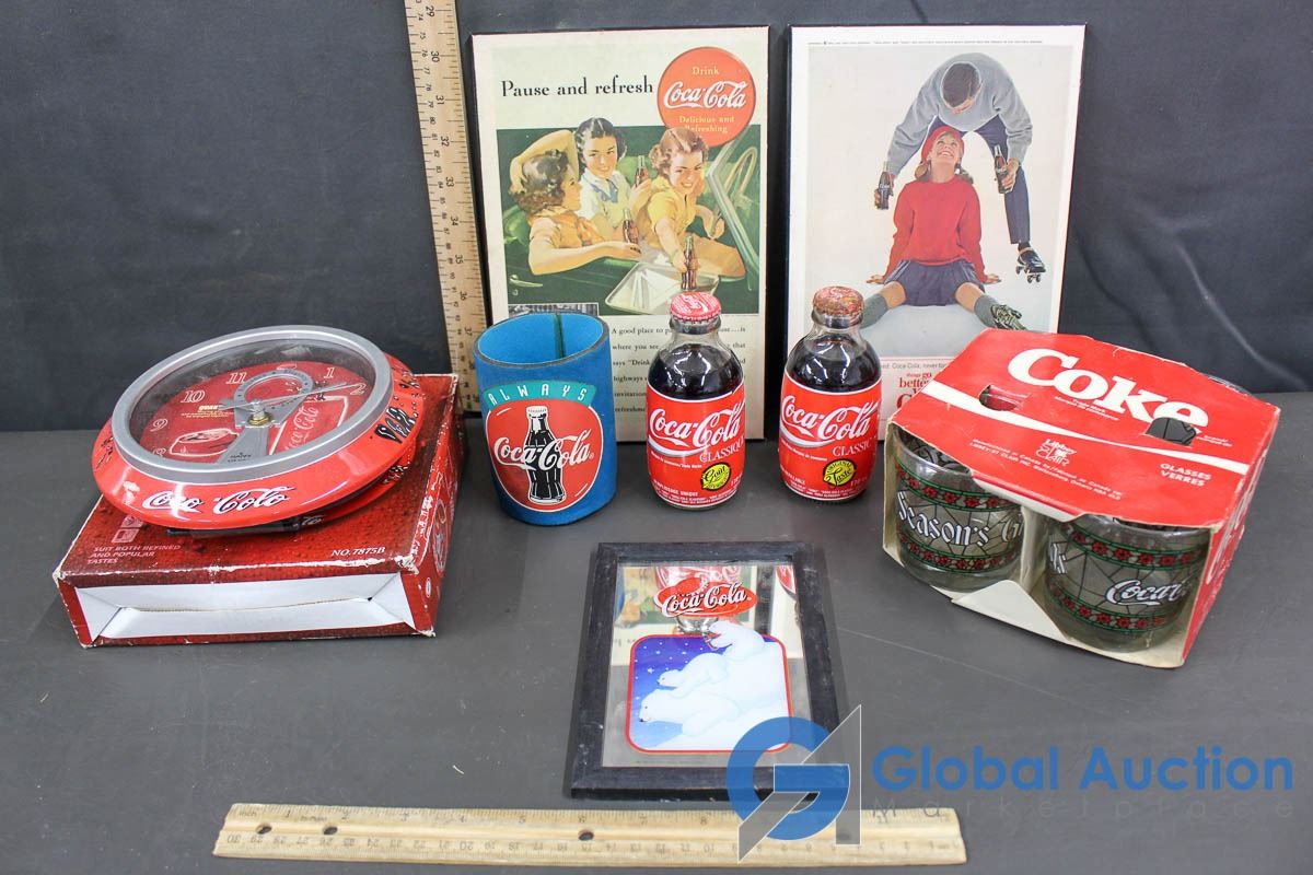 Coca-Cola Glasses, Bottles, Clock, Can Sleeve, Signs and Mirror