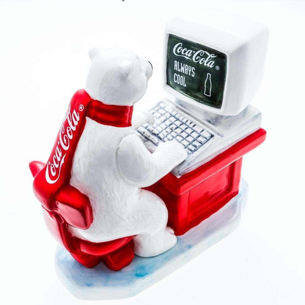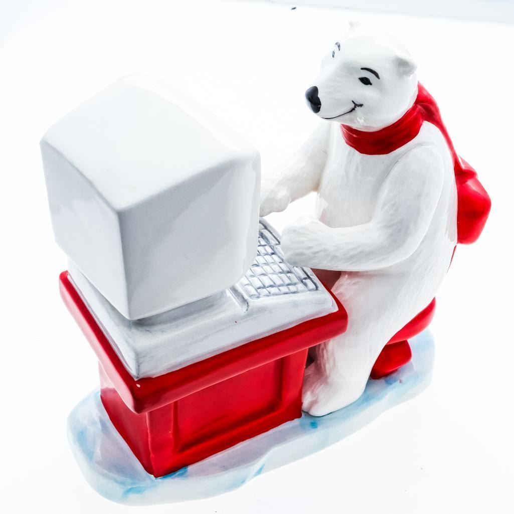 Coca Cola Glazed Porcelain Figurine Polar Bear at The Computer