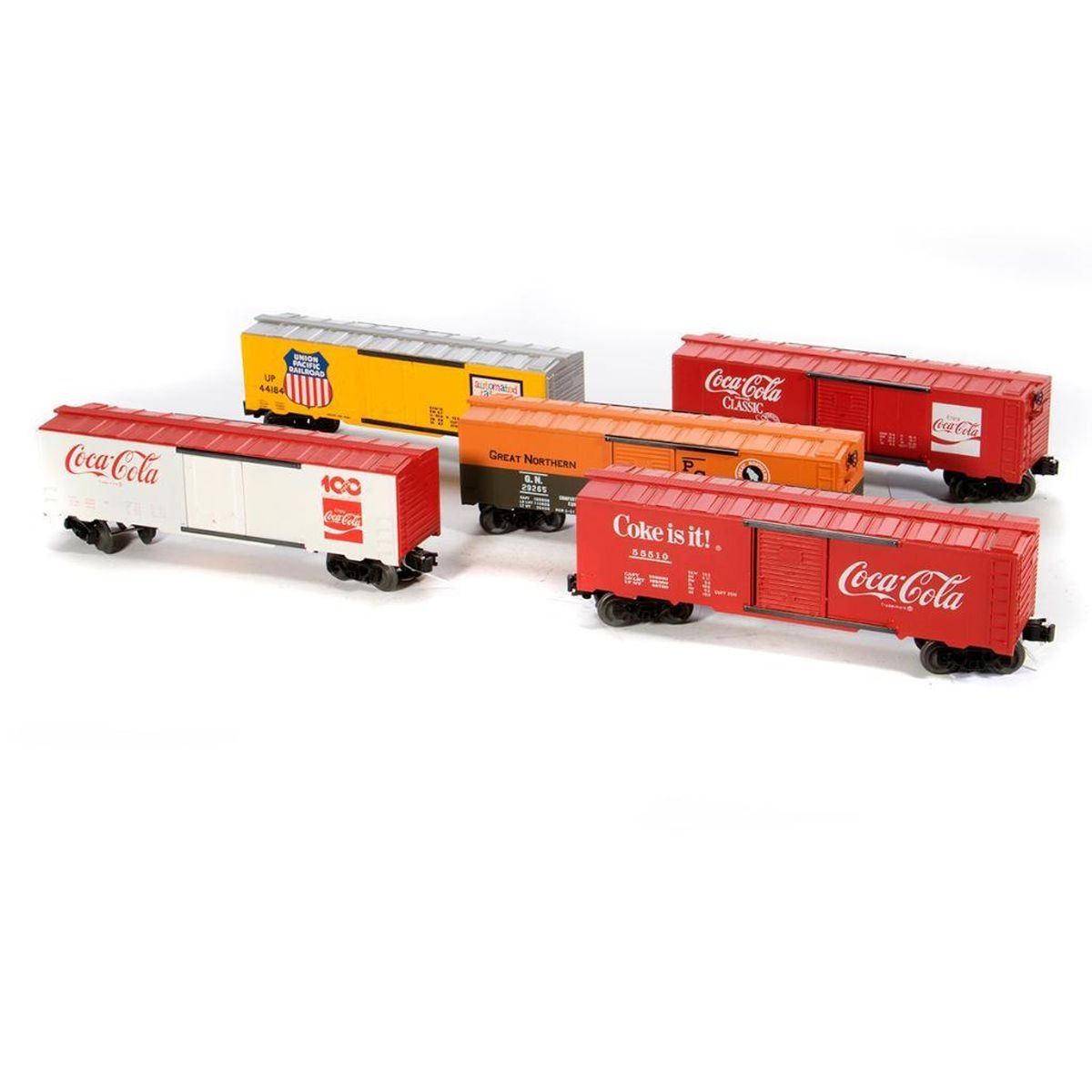 Coca-Cola, Great Northern, and Union Pacific cars
