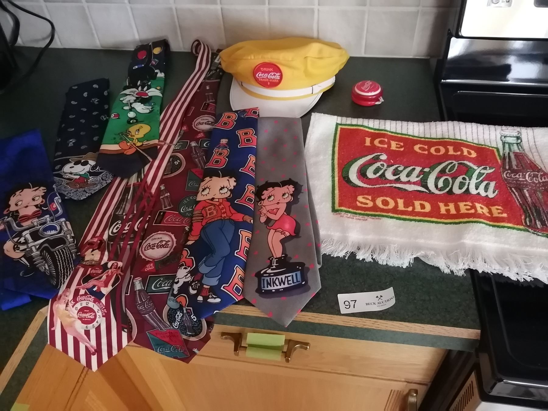 Neckties include Coca-Cola, Looney Tunes, and Betty Boop.